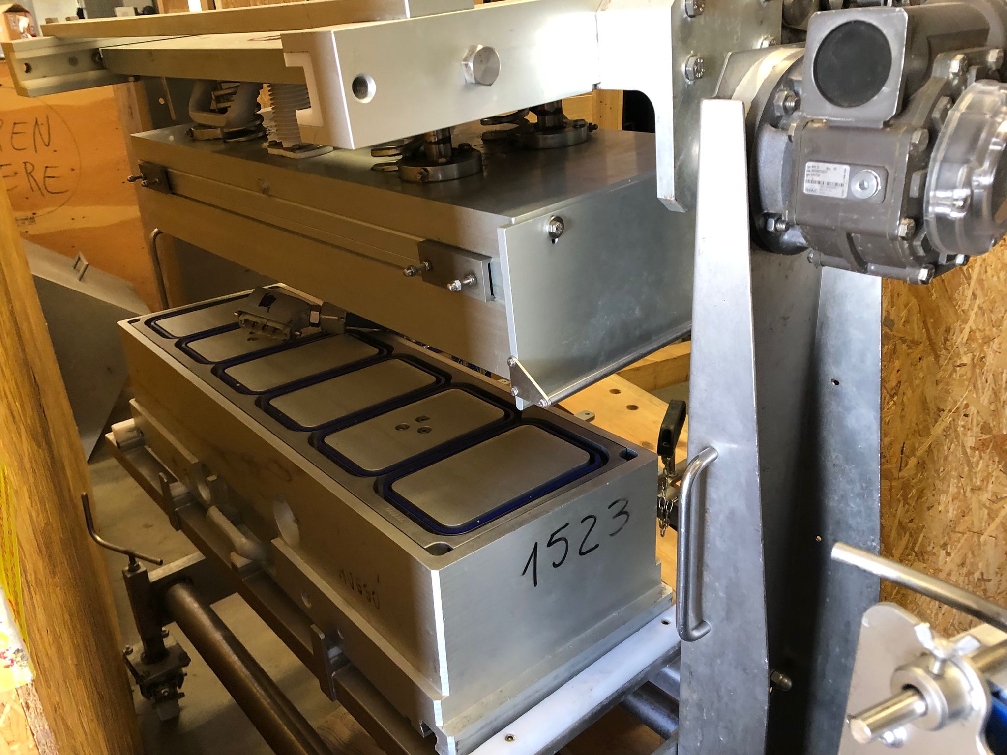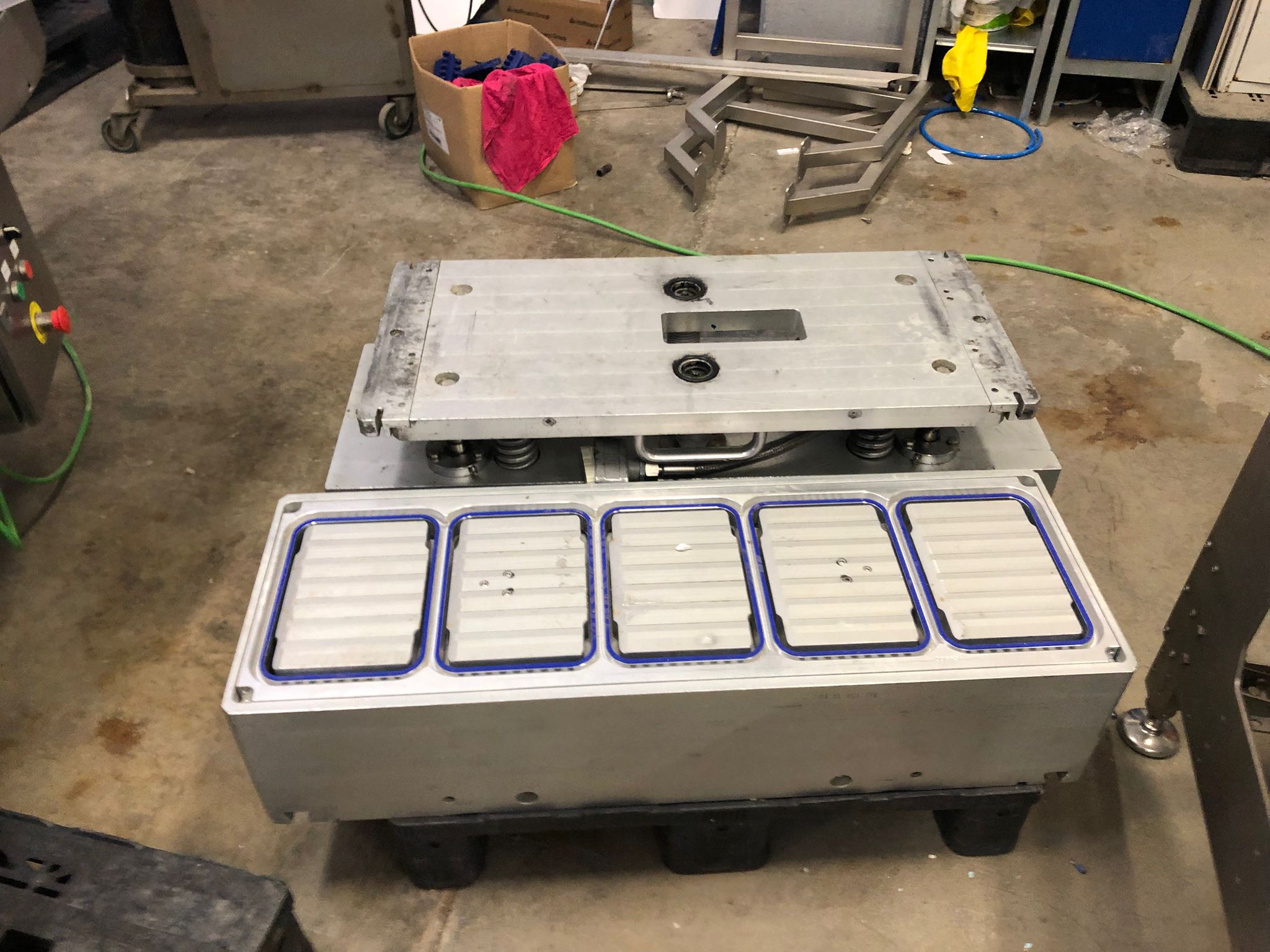 Esta unidad se entrega equipada con molde 1825, estantería para utillaje y carro auxiliar, facilitando la operativa diaria y el cambio rápido de formatos.